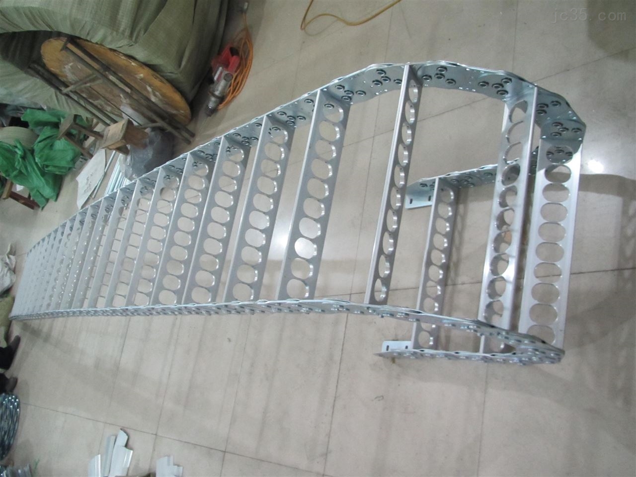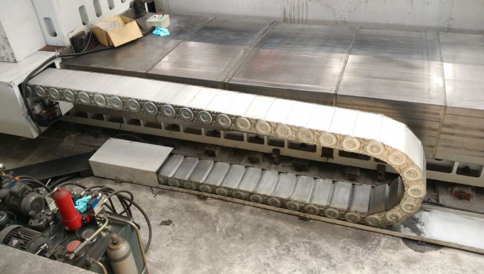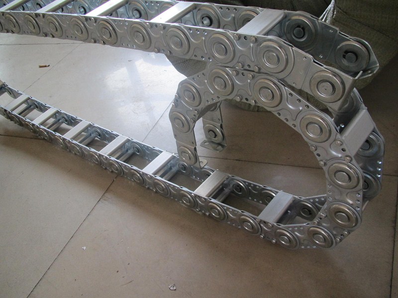 (3)單元鏈節(jié)由左右鏈板和上下蓋板組成,鋼鋁拖鏈每節(jié)都能打開,裝拆方便,不必穿線,打開蓋板后即可把電纜、油管、氣管、水管等放入鋼制拖鏈。