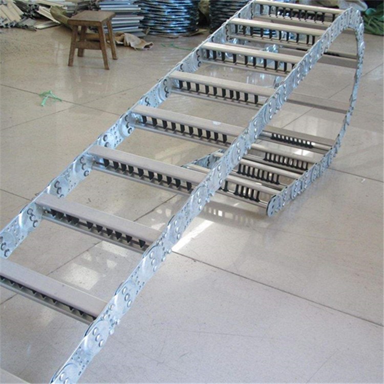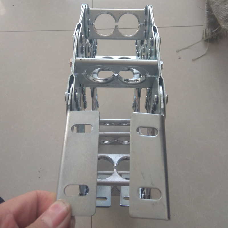 使電纜或橡膠管與拖鏈之間產生相對運動,不產生扭曲變形,鏈板經鍍鉻處理外形效果新穎,結構合理,靈巧強度高,
