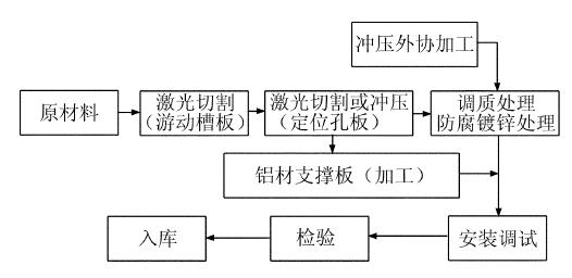 產(chǎn)品的原材料主要為鋼材、合金鋁。其制作過程為:先選擇原材料,按零件圖尺寸激光切割下料; 根據(jù)圖紙分別對不同的組件進(jìn)行精加工( 即車、鏜、鉆、銑等工序) ,然后將檢驗合格的零件按裝配圖要求裝配,經(jīng)檢驗合格后產(chǎn)品組裝入庫。