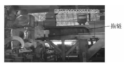 圖4 為某鋼廠煉鋼廠VOD 爐拖鏈,型號: SLP620 /750× 1140 × 11550; SLP620 /600 × 1140 × 10850,應(yīng)用長壽命鋼制拖鏈?zhǔn)褂弥芷谔岣叩? 年。3. 3 長壽命鋼制拖鏈在軋鋼上的應(yīng)用