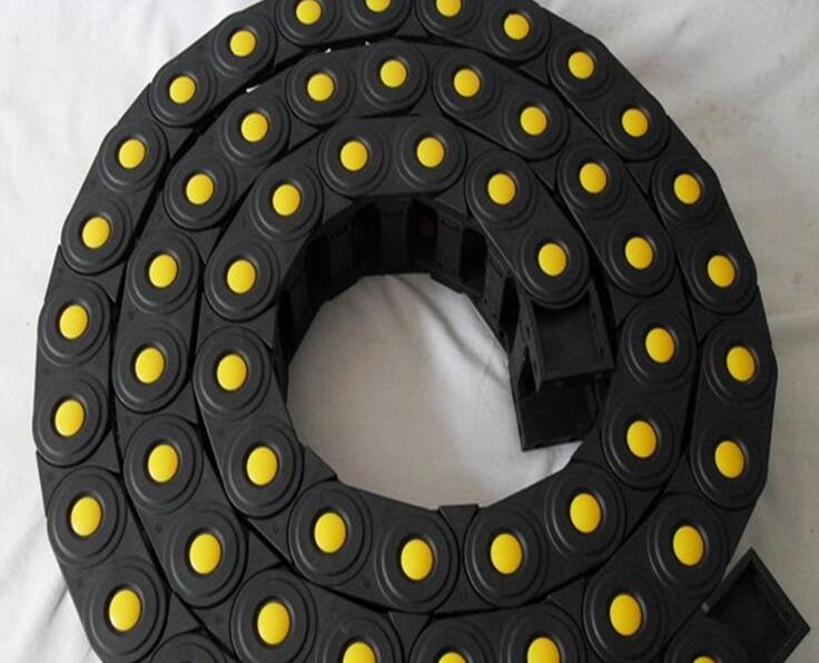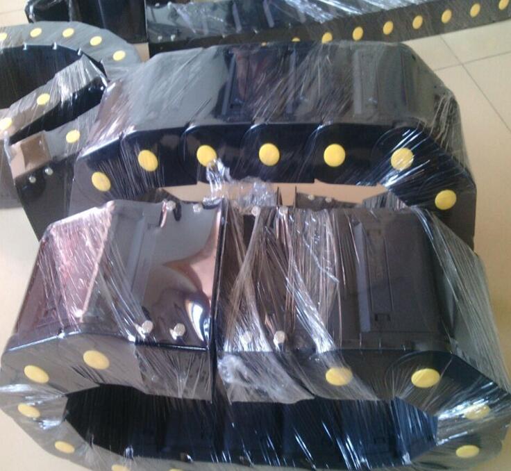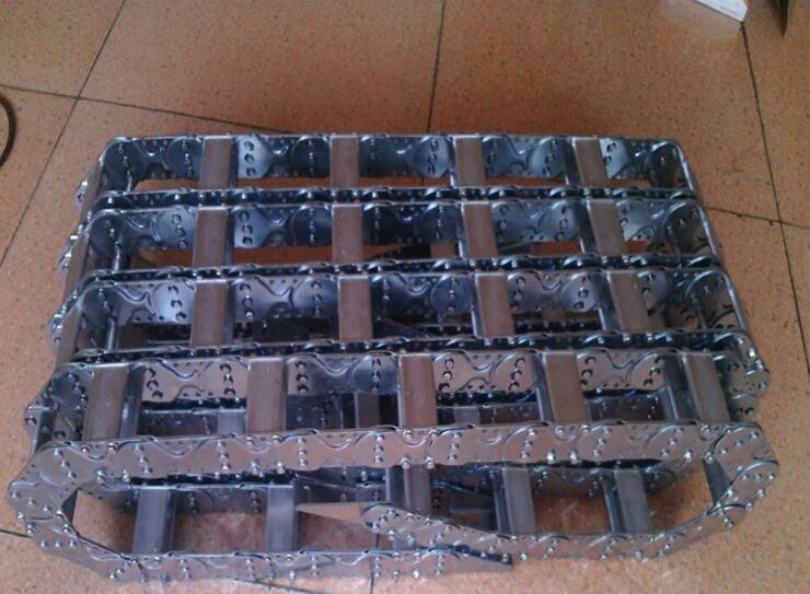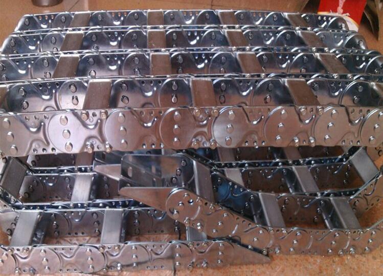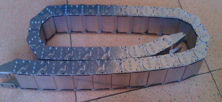 鋼鋁拖鏈一般應用在機床等機械鋼鋁拖鏈的主體是由鏈板(采用優質鋼板經淬火后再拋光鍍鉻/鍍鋅/噴塑處理)、支撐板(擠拉鋁合金)、軸銷(合金鋼)等部件組成.使電纜或橡膠管與拖鏈之間不產生扭曲變形,鏈板經鍍鉻處理外形效果新穎,結構合理,靈巧強度高,該產品鋼性好,不變形.安裝方便,使用可靠,易拆裝,不下垂.由于本產品外形精美,可在較大程度上增強機床設備的整體藝術美觀效果,增強我國機床,機械設備在國際市場的競爭能力。的電纜、油管、氣管、水管、風管上,對電纜、油管、氣管、水管、風管起牽引和保護作用。按連接板和樣式分為幾個類別,每個類品又有多個型號!鋼鋁拖鏈(不銹鋼鋁拖鏈、全自動鋼鋁拖鏈、新型鋼鋁拖鏈、半封閉鋼鋁拖鏈)