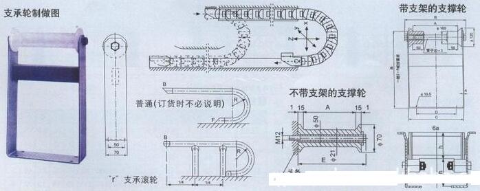 鋼制拖鏈設計參數:節距,彎曲半徑,拖鏈寬度,拖鏈長度,支撐板形式。
